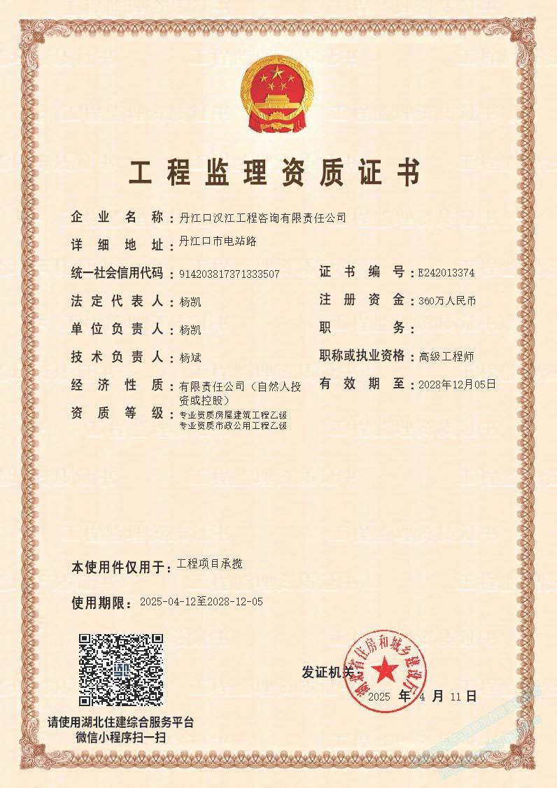 (原漢江綜合開發公司水利水電監理中心)成立于 1989年3月,1993年6月經水利部審批成為首批注冊監理單位 (隸屬于長江水利委員會), 注冊資本 360萬元 。公司位于湖北省十堰市丹江口市電站路。公司目前擁有水利部頒發的 水利工程施工監理甲級 、 水土保持工程施工監理 乙 級 資質 ;住建部頒發的 房屋建筑 、 市政公用工程監理 乙 級資質 。 可獨立承擔 各類水利水電工程 、 一般工業與民用建筑工程監理 , 土地整治 , 招標代理 、 技術咨詢 等業務。公司實行董事會領導下的總經理負責制,下設辦公室、經營部、財務部、工程技術部等職能部門?!?/span>